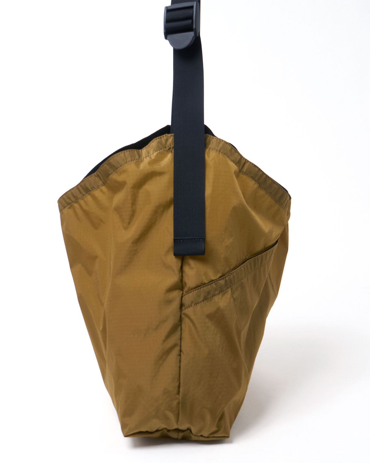 日本の伝統的な「あずま袋」から着想を得た、〈hobo〉のアイコン的ショルダーバッグ。ストラップには耐久性のあるテープを使用し、長さの調節で型掛け/斜め掛けに対応。特徴的なカッティングに沿って本体外側にポケットをあしらいました。MサイズはノートPCがしっかり収まり、マチもあるので見た目以上に収納力があります。SS26シーズンは従来よりもハリ感のあるナイロンリップをチョイスし、質感高さをアップデート。