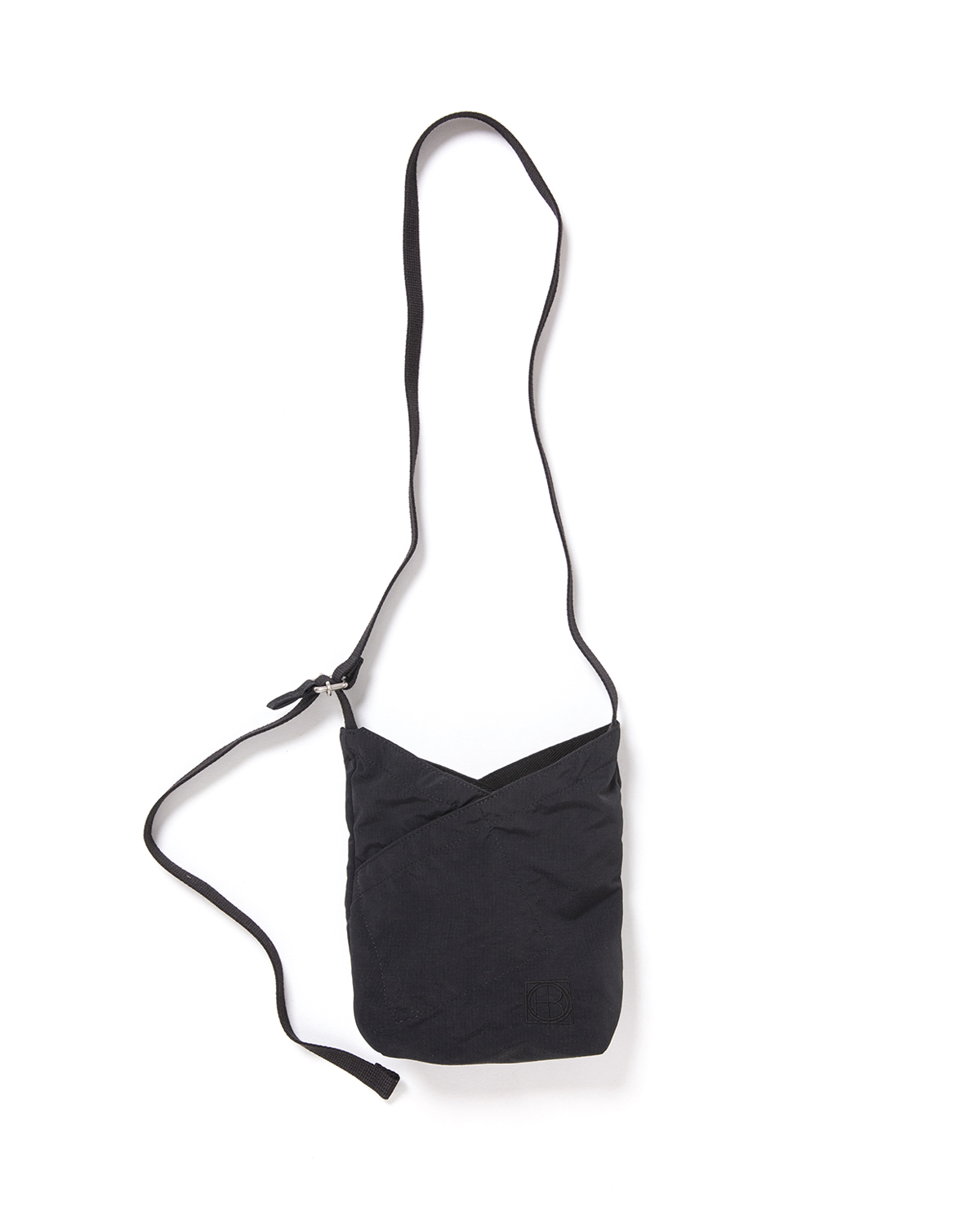風呂敷や手ぬぐいを縫い合わせ、鞄の代わりとして使われていた「あずま袋」から着想を得たワンショルダーバッグのSサイズになります。独特なフォルムと斜めに配されたポケットが特徴的で、書類やノートなど、A4サイズのものが丁度良く収まります。手下げと肩掛けどちらでも使用が可能で、ストラップはプルを引くだけで容易に調節ができます。正面のポケットはICカードや鍵などの収納が最適なサイズとなっています。繊維廃棄物から再生されたナイロンを使用したサスティナブルなファブリックで、マットな面持ちとワッシャー加工によるリラックスした雰囲気が特徴です。ふっくらと仕上がるタスラン糸によりコットンに似た肌ざわりとソフトな風合いを持ち、尚且つ撥水性にも優れた素材となっています。中肉のリップストップ組織はリサイクル素材といえど、ナイロン特有の強度も併せ持っています。