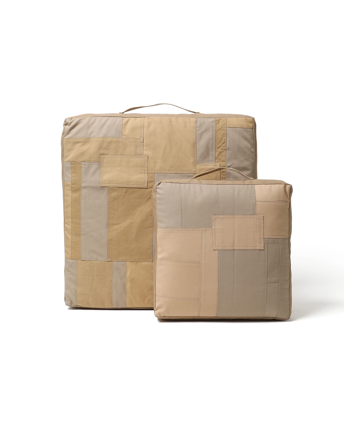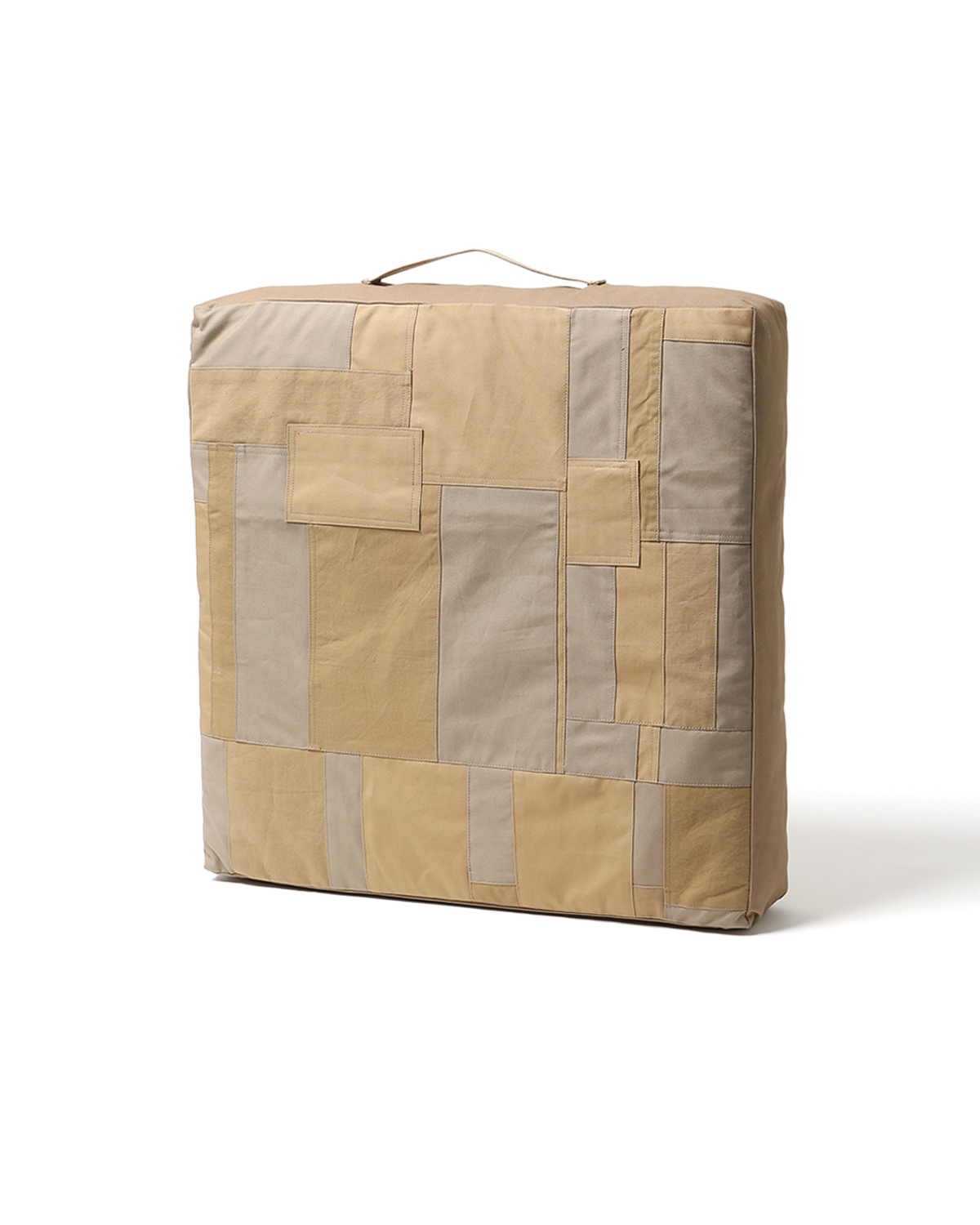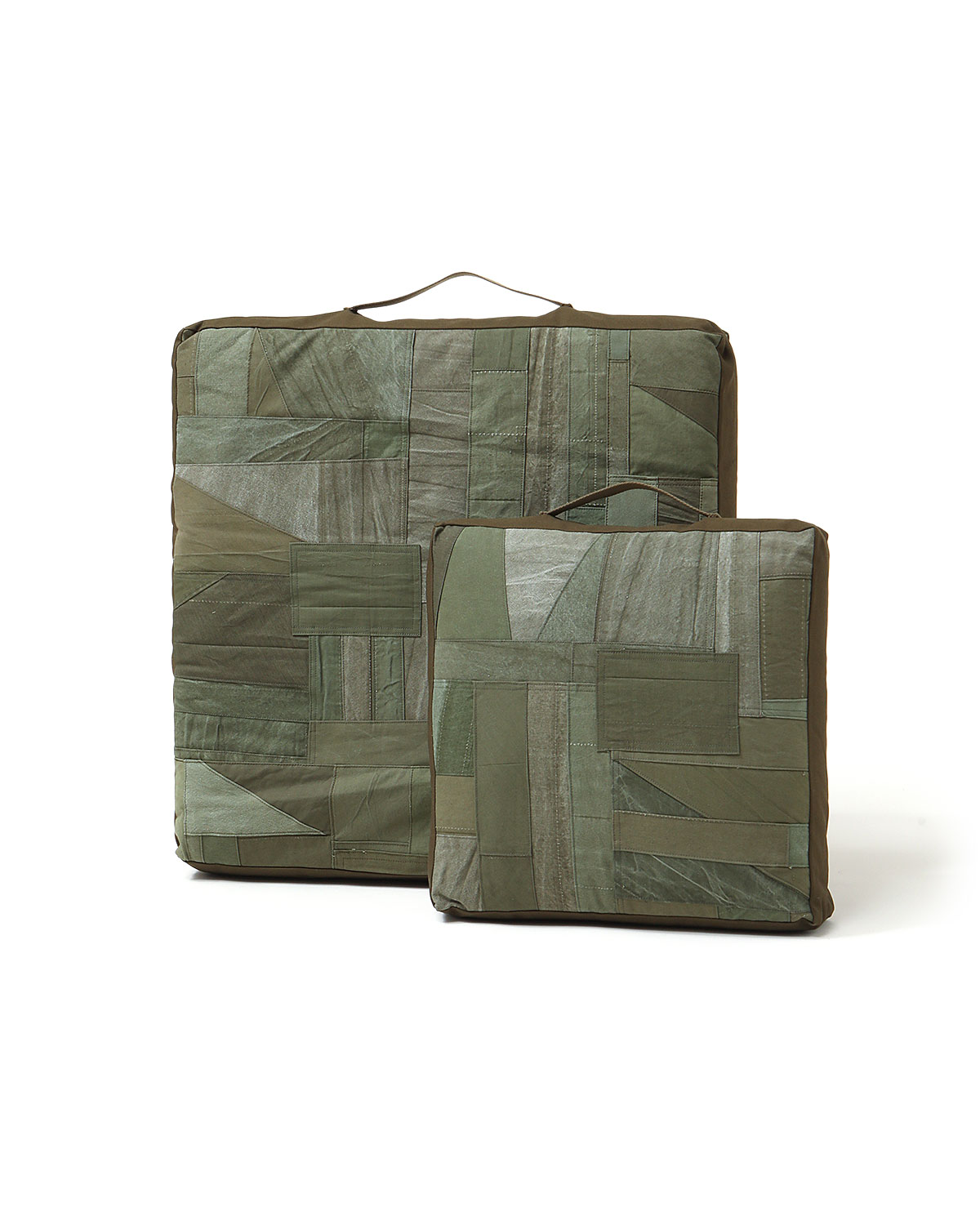 ヴィンテージのパッチワーク生地を使用した敷くタイプのクッション。2サイズ展開のMサイズです。古いジーンズをリペアしたような、立体感のあるパッチワークが素材の表情を引き立てます。1点1点生地の質感や色落ちが異なり、パッチワークのパターンも1つとして同じものはありません。はじめは若干の張りと硬さがありますが、使い込むことでやわらかくなりフィット感が向上していきます。