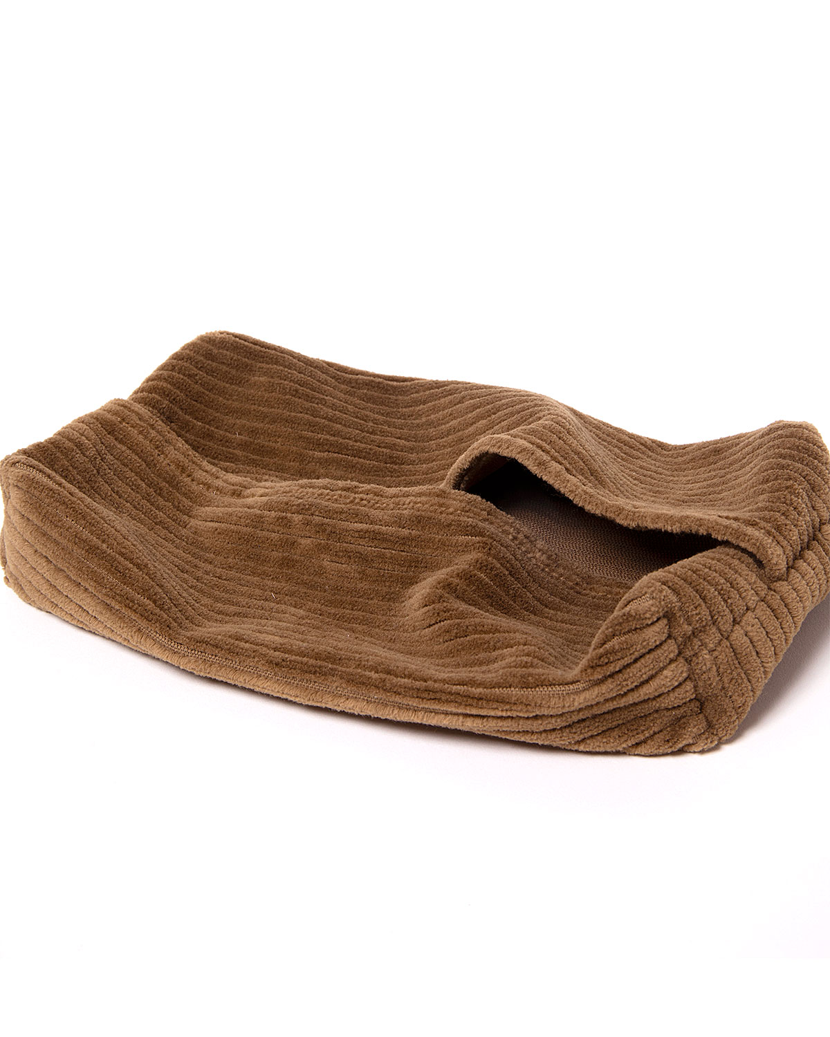 一枚仕立てで製作したティッシュケース。ねじりの入った口元が特徴のソフトパックティッシュを想定したデザインです。様々なシチュエーションにマッチし得る風合い豊かなキャンバス地を採用しています。