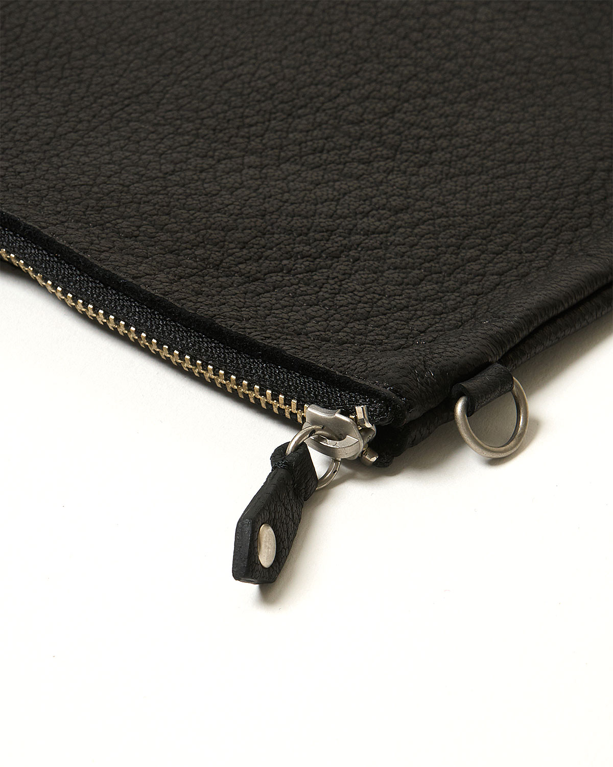 シンプルがゆえに何にでも使えるレザーポーチ。鍵の収納に、また小銭やカードを入れた財布として、その他イヤホンやコスメポーチなど様々な用途に使える3サイズ展開です。側面に小さなD環を設けており、同素材で展開するレザーストラップを組み合わせての使用もお勧めです。